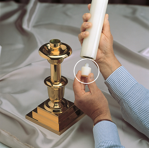 Attach adaptor by inserting into base of candela, then simply insert candela into socket of your candle holder. M".