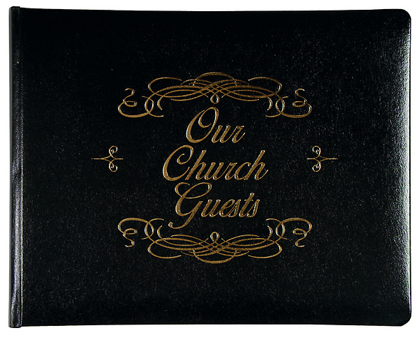 Homes, churches, weddings and funerals all provide occasion for us to welcome and receive our honored guests. Broadman offers you a black guest book with a bonded leather padded cover, rounded corners, gilded gold page edges, and ribbon marker. This 58-page book lays flat for the easy signing of over 700 names and addresses. All pages have Psalm 122:1 (I was glad when they said unto me, Let us go into the house of the Lord. KJV) on them and are acid free. This 10 5/8” x 8 1/2” book is black with silver lettering on the cover and comes in a gift box.