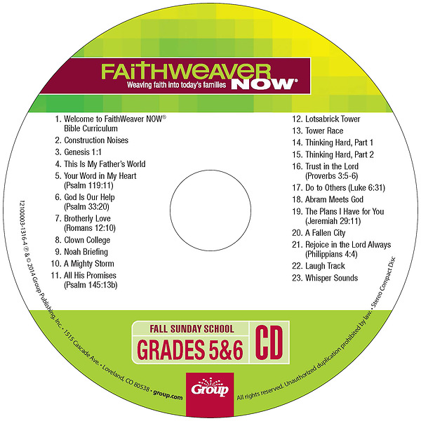 These CDs help you lead memorable moments in your FaithWeaver NOW® lesson. They include songs and sound effects. One CD is included in each FaithWeaver NOW Teacher Pack—purchase extras to simplify team teaching! Having extras comes in handy when planning for additional programming times. They also make great gifts for kids at the end of the quarter to remind them of what they learned.