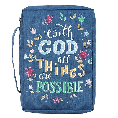 Bible Cover Canvas Large Navy with God All Things Matt 19