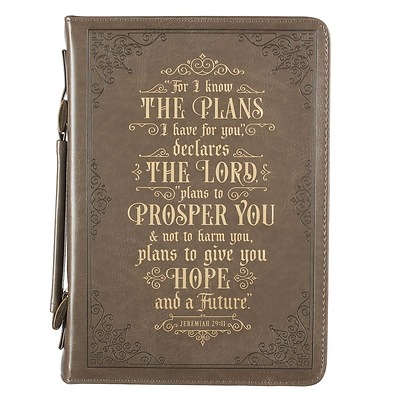 Bible Cover Medium Taupe I Know the Plans Jeremiah 29