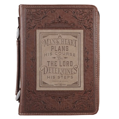 Bible Cover Extra Large Classic Brown a Man's Heart - Proverbs 16