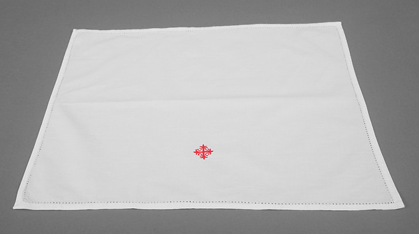 This lavabo towel is made of 100% cambric linen that is finely woven and features an embroidered Red Cross and Vine at the edge. Machine washable. Sold in packs of 3. Dimensions: 20" x 16". Imported.