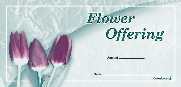 This Flower Offering Envelope comes in a package of 100 envelopes, and is not numbered or dated. Envelopes are currency size: 3” x 6¼”.