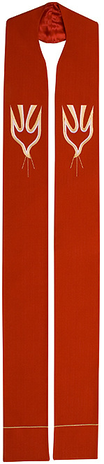 This stole is embroidered with a descending dove to remind us of the Holy Spirit descending on Pentecost. The stole has a contour neck for comfort, a decorative braid at the bottom and is 5” x 110”. Made in the USA.