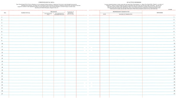 Westminster Church Register Binder Sheets - Chronological Roll Of Active Members