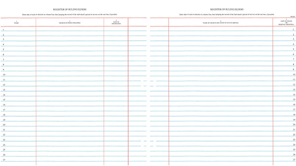 Westminster Church Register Binder Sheets Ruling Elders