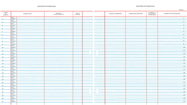 As your congregation grows and changes, you need to update records. The Register of Marriage Sheets makes updating easy, and they are designed to fit both the Westminster Church Register Complete Book and the Westminster Small Church Register Complete Book . Sheets are 32# acid free bond paper with blue speckled edging. 9-3/4" x 11” sheet size. Sheet is printed on both sides. 3 rectangular hole punched 8.0" OC's. Sold in packs of 5.
