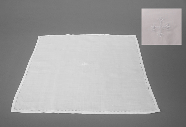 This corporal is made of 100% cotton and features an embroidered white Cross in the center. Very absorbent. Machine washable. Sold in packs of 3. Dimensions: 20" x 20". Imported.