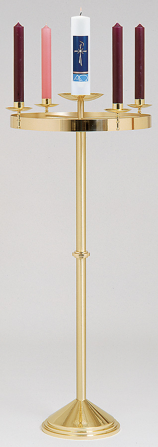 This traditional rigid advent wreath features a non removable ring with a two tone finish.