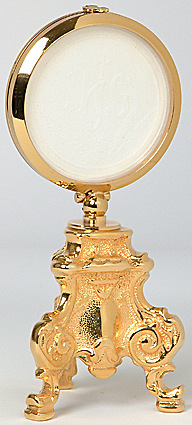 Chapel Monstrance, Gold Plated. 2 3/4" Fixed Luna. 7 1/4" H., 3" Base