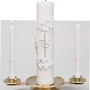 Wedding Candelabra. 3”H. x 15”W., 5” weighted base. Candles not included. Brass satin finish.