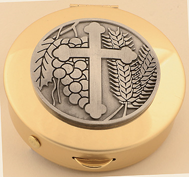 Pyx Brass with pewter cross medallion