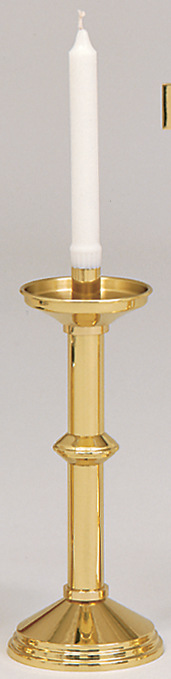 Brass candlestick. 12" H., 5" base, 7⁄8" socket. Candle not included.