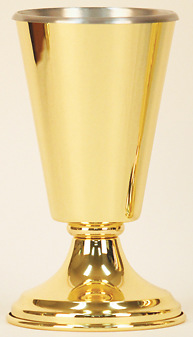 Highly polished and clear lacquered brass altar vase with aluminum liner. 9"H., 5" base.