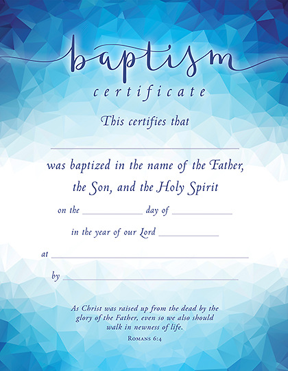 The following items and their quantities are included in the kit product: Certificate Baptism (Package of 6) Romans 6:4