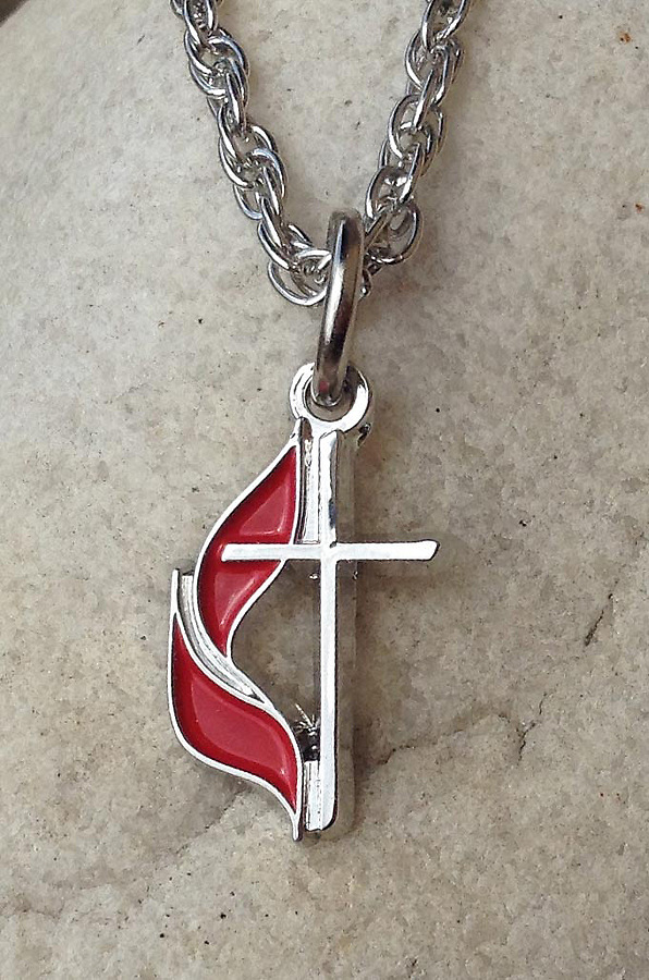 Show your faith-filled allegiance with the United Methodist Cross & Flame Silver-Plated Necklace - ideal for church pastors and leaders who want to share their affiliation. The United Methodist Cross & Flame emblem is delicately cut and allows one to tell a story through their attire. This affordable necklace’s dimensions are 0.75 inches and comes with an 18” chain, so whether for a special event or everyday garb, this silver-plated necklace will always demonstrate your faith with ease and style! Makes a great gift!
