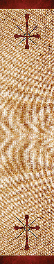 A reflection of holy simplicity, our Lenten Array Economy Table Runner is an affordable way to update your paraments this Lenten season!  With a cross and nails set against a rough cloth background, this parament conveys the heart attitude of humility and reminds us of His sacrifice and love. Our economy line paraments are quality-crafted to be timeless pieces, printed on satin fabric with high-resolution heat-sealed inks for crisp vibrant colors, it comes with a matte finish and is unlined for a clean look.The complete 3-Piece Set includes the Altar Cloth, Pulpit Scarf and Bible Marker. The Lenten Array Economy Table Runner will be cherished for years to come, order early to ensure timely delivery! Made in USA.