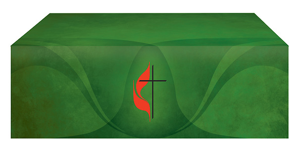 The Cross and Flame Altar Frontal provides your church with a bold and beautiful way to celebrate your faith and affiliation to the United Methodist Church each Sunday. Our economy line paraments are quality-crafted to be timeless pieces, printed on 100% polyester satin, this Altar Frontal comes with a matte finish and is unlined for a crisp and clean look. The complete set (see below) includes the Altar Frontal, Pulpit Scarf, and Bible Marker - all of which have been designed to inspire your congregation every time they enter your sanctuary! Ready to upgrade your altar vestments? Look no further than the Cross and Flame Altar Frontal – order today! Made in USA.