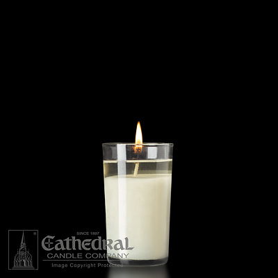 These 40-hour glass enclosed chapel/devotion lights lend themselves well to several applications. Made in the USA of 51% beeswax. Sold in cases of 12.