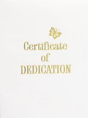 An infant dedication is a Christian ceremony that welcomes a baby into the church family. The ceremony does not include baptism. This simple, yet striking contemporary steel-engraved certificate features a butterfly design on the cover and inside. Give this certificate to the parents as a remembrance for the dedicated child and a beautiful keepsake of the special day. The scripture quotation on the inside cover reads: