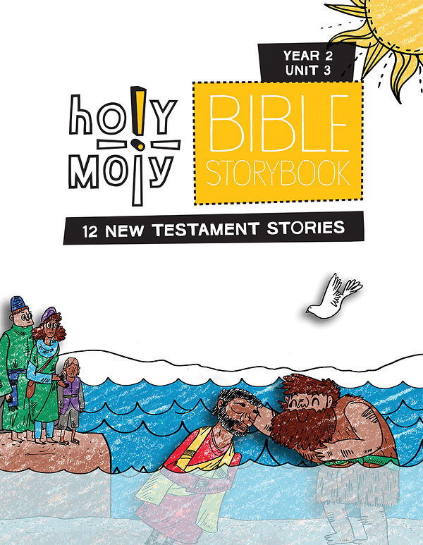 Each Holy Moly Sunday school lesson invites kids into a Bible story with short animated video Bible story retellings, reinforces the lesson through the colorful pages of the Holy Moly Bible Storybook and Connect Bible, and encourages creativity and imagination with leaflet activities that bring the stories to life. The Holy Moly Bible Storybooks, designed for kindergartners through second graders, helps pre-Bible readers remember and relate to the Bible story through engaging, rhyming language and vibrant, colorful illustration.