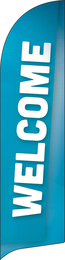 Welcome Block Letter Blue Flag Banner