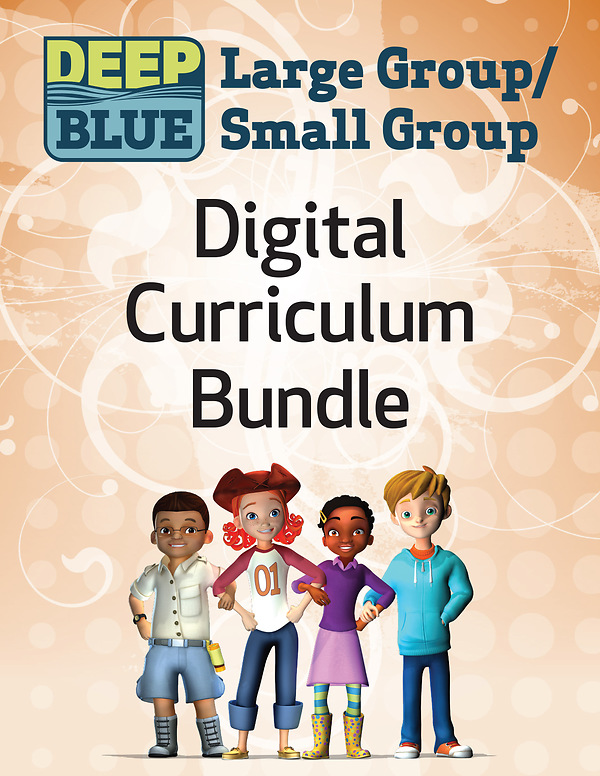 Deep Blue Large Group/Small Group bundle includes: weekly session plans, Bible verses, games, art, science, worship, prayers, reproducible sheets for activities, posters, and interactive Bible stories.