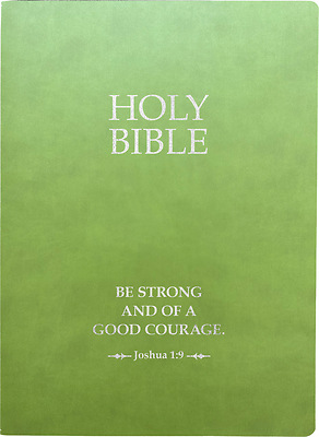 - Olive green ultrasoft cover with "Be strong and of a good courage" life verse in silver foil