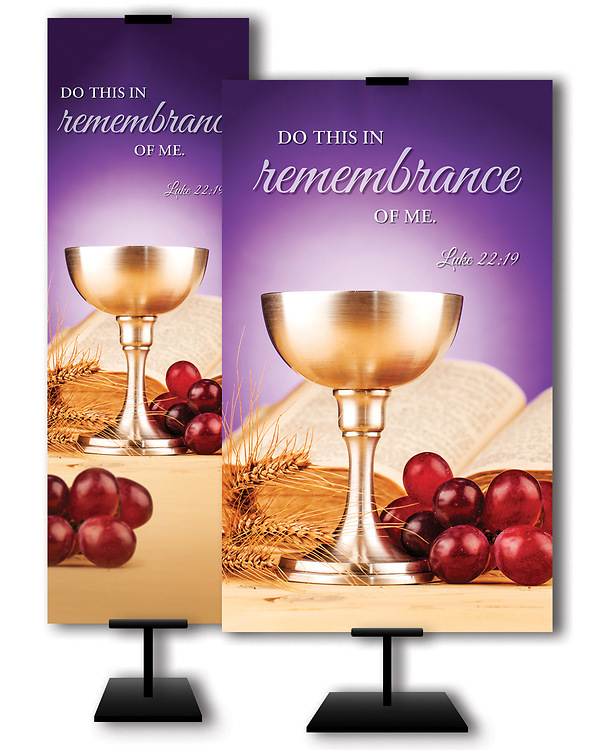 Enhance the observance of communion with this beautiful fabric banner. Available in sizes 2' x 6' or 3' x 5'. Text: