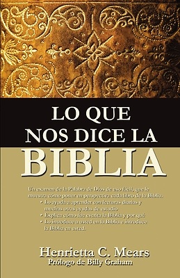 El claro y conciso examen de las Escrituras que ella (Henrietta C. Mears) hace, nos revela que la Biblia es un libro, una historia, y un relato. Este companero del estudio biblico ayuda a hacer que las Escrituras revivan para usted, y lo ayudara a conocer mejor la revelacion escrita de la Voluntad de Dios a los humanos."