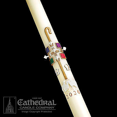 Cathedral's SCULPTWAX candles are 51% beeswax and are skillfully decorated with hand-cast, color infused wax. The beautifully detailed appliques created a striking and unrivaled, three-dimensional relief. Includes a set of five wax nails with embedded incense and year dates. Made in the USA. If unsure of candle size needed please click the Size Chart button under the image.